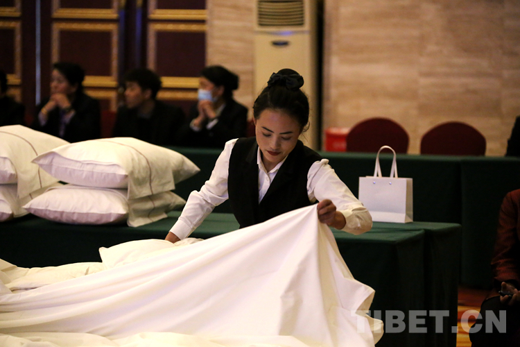 中國(guó)西藏網(wǎng)訊 5月11日,由西藏自治區(qū)旅游發(fā)展廳、西藏自治區(qū)總工會(huì)、共青團(tuán)西藏自治區(qū)委員會(huì)、西藏自治區(qū)婦女聯(lián)合會(huì)主辦,西藏旅游飯店業(yè)協(xié)會(huì)承辦的2023年西藏自治區(qū)星級(jí)飯店從業(yè)人員服務(wù)技能競(jìng)賽在拉薩開(kāi)賽。45名選手圍繞中餐宴會(huì)擺臺(tái)、西餐宴會(huì)擺臺(tái)、中式鋪床及夜床服務(wù)、前廳服務(wù)4個(gè)項(xiàng)目同臺(tái)競(jìng)技?! ?/p>