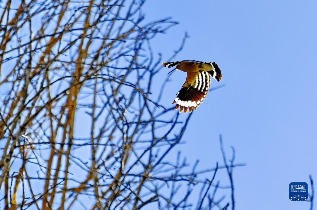 戴勝在拉薩市城關(guān)區(qū)蔡公堂街道次角林村上空飛過(5月14日攝)。新華社記者 張汝鋒 攝