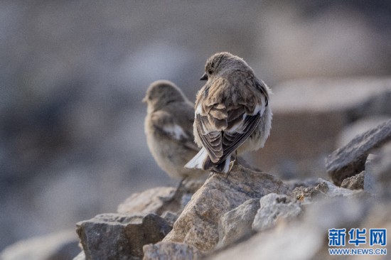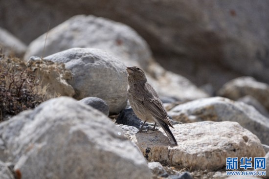 5月13日,棲息在珠穆朗瑪峰游客大本營附近的褐翅雪雀。新華網(wǎng) 旦增努布 攝