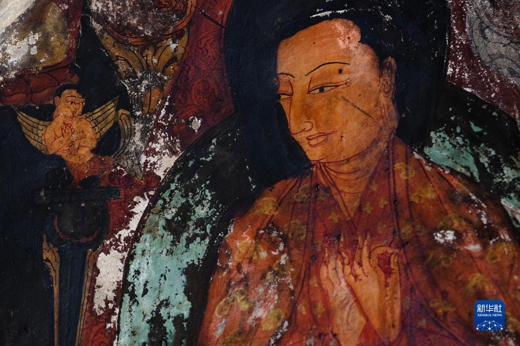 這是5月26日拍攝的皮央石窟壁畫(huà)中的人物造型。新華社記者 費(fèi)茂華 攝