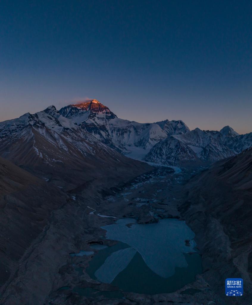 這是在海拔7000米左右高空拍攝的由絨布冰川融水形成的湖泊群(5月25日攝,無人機照片)。新華社發(fā)(旦增努布 攝)
