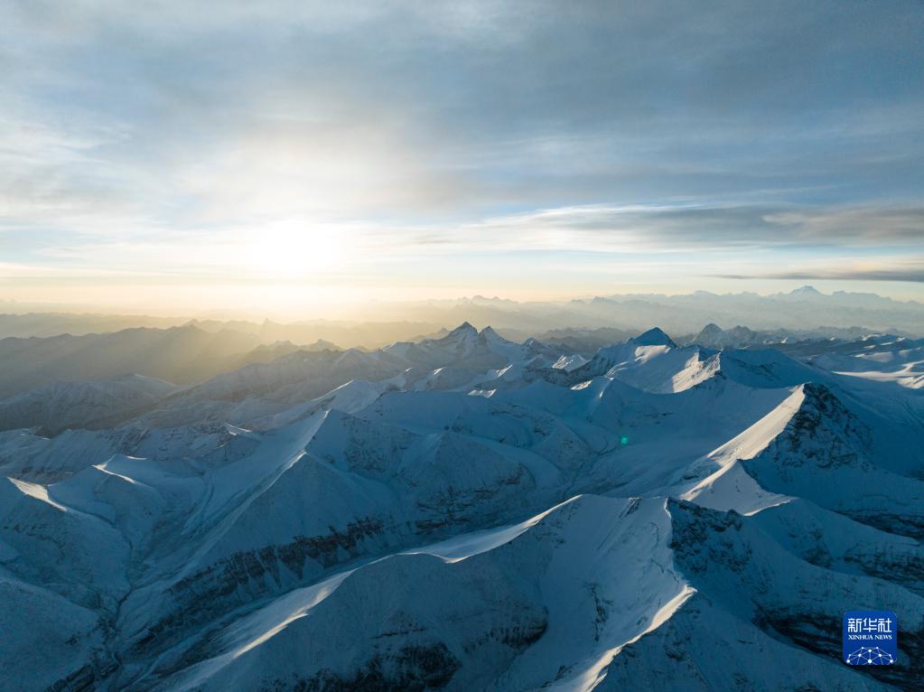 這是在海拔8000米左右高空拍攝的珠穆朗瑪峰和喜馬拉雅山脈群山(5月23日攝,無人機照片)。新華社記者 洛卓嘉措 攝