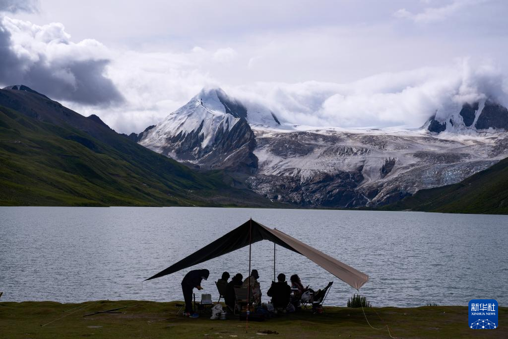 游人在薩普雪山下的湖邊徒步(8月16日攝)。新華社記者 姜帆 攝 ??
