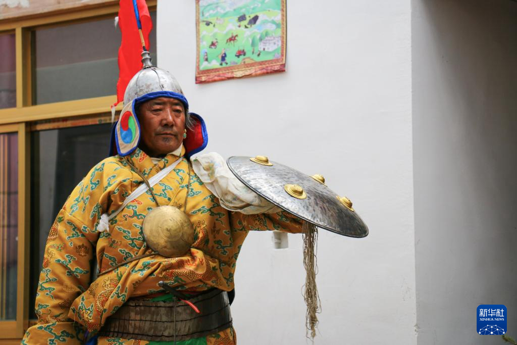 科迦藏戲團團長達(dá)瓦洛珠正在表演藏戲(8月9日攝)。新華社記者 聶毅 攝