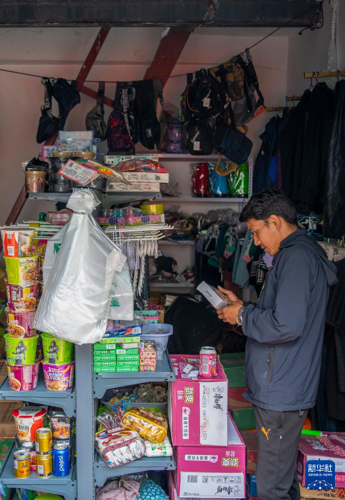 尼泊爾邊民在樟木口岸互市貿(mào)易市場選購商品(9月9日攝)。新華社記者 姜帆 攝??