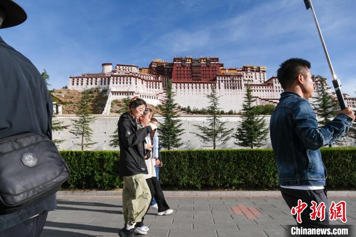 圖為“雙節(jié)”期間,游客路過(guò)布達(dá)拉宮。江飛波 攝