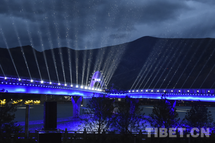 圖為在拉薩高新區(qū)舉辦的2023全球數(shù)字經(jīng)濟(jì)大會拉薩高峰論壇開幕式“數(shù)字之夜”城市脈搏點(diǎn)亮儀式 攝影:次旦拉姆