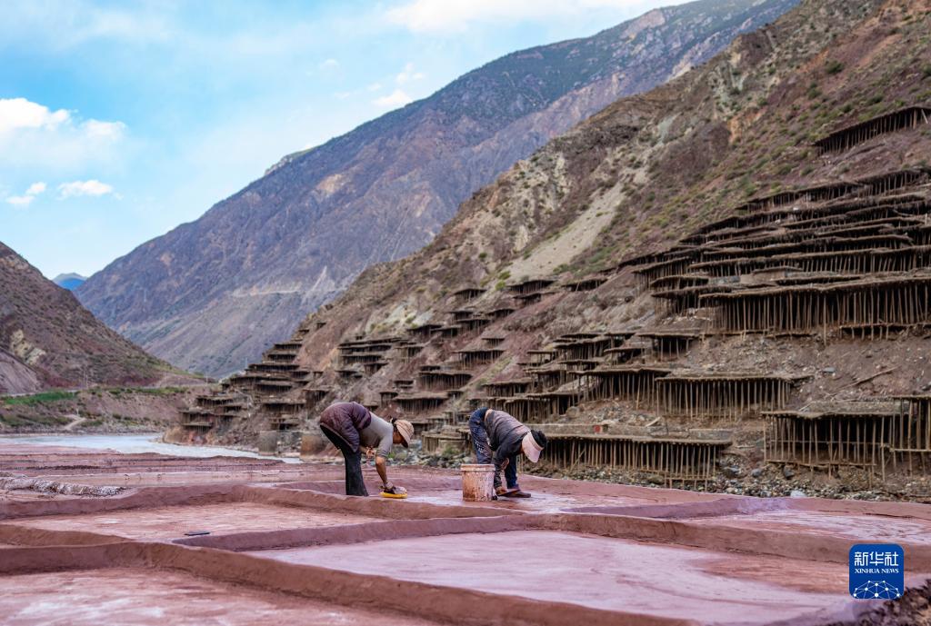 西藏昌都市芒康縣納西民族鄉(xiāng)位于瀾滄江畔,當(dāng)?shù)貜奶拼_始制鹽,距今已延續(xù)1300余年。鹽田在瀾滄江兩岸依山而建,由多根木柱搭架,架上用透水性強(qiáng)的泥土鋪成平面夯實(shí)。當(dāng)?shù)卮迕袢员3种嫉氖止覃}方式,他們從瀾滄江畔的鹽井、鹽池中取出鹵水倒入鹽田,經(jīng)陽光蒸曬、風(fēng)干,結(jié)晶成鹽。遠(yuǎn)遠(yuǎn)望去,鹽田錯(cuò)落有致,景色奇美。