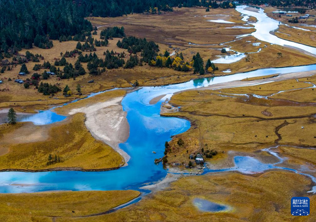 時(shí)值金秋,西藏林芝市秋色已濃,黃葉與初雪交織,流水并雪山輝映,景色如詩(shī)如畫。