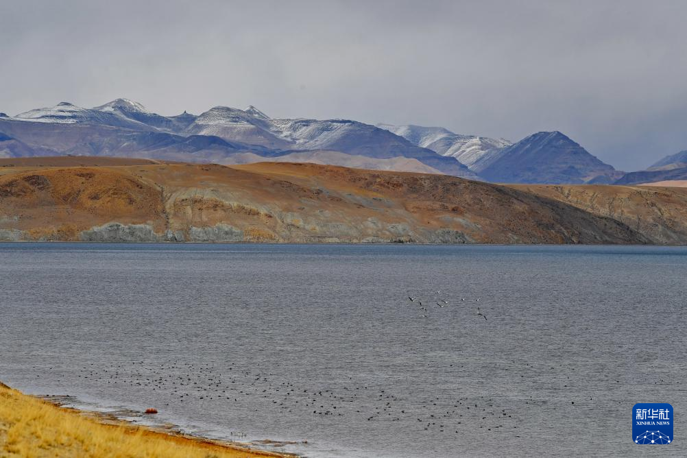 瑪旁雍錯(cuò)湖面上的斑頭雁(10月29日攝)。新華社記者 張汝鋒 攝