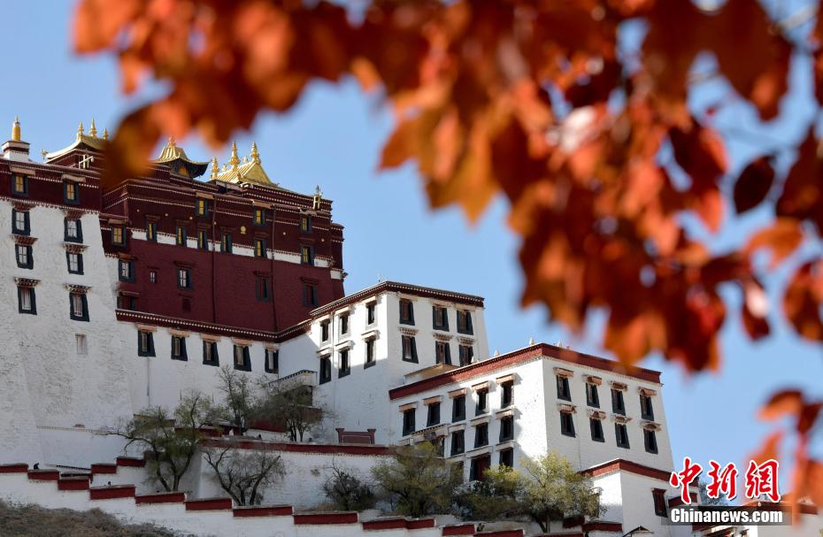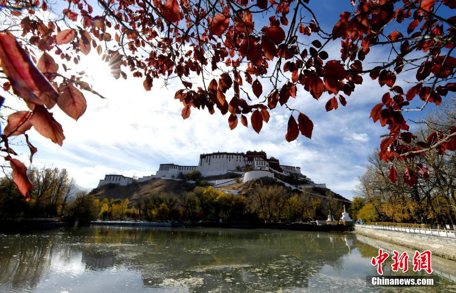 圖為初冬拉薩,布達拉宮在周圍紅黃樹葉的映襯下色彩斑斕。李林 攝