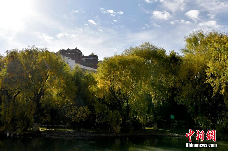 圖為初冬拉薩,布達拉宮在周圍紅黃樹葉的映襯下色彩斑斕。 李林 攝
