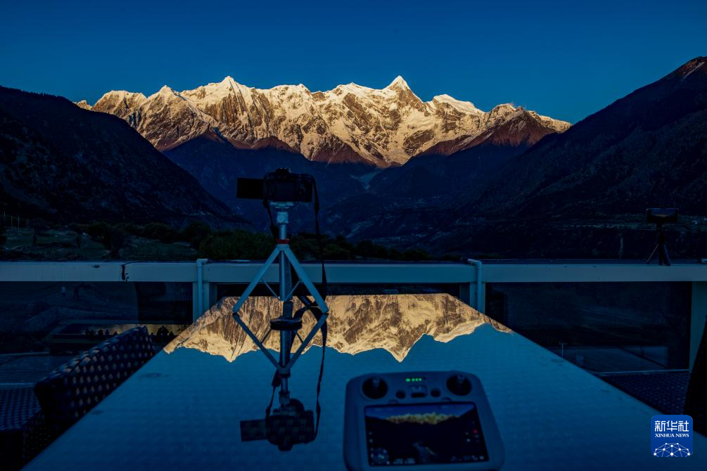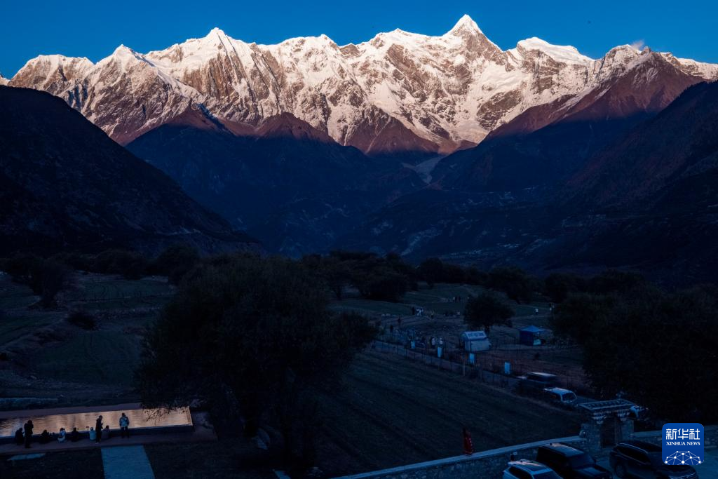 這是11月13日在索松村拍攝的日落時分的南迦巴瓦峰。新華社記者 姜帆 攝