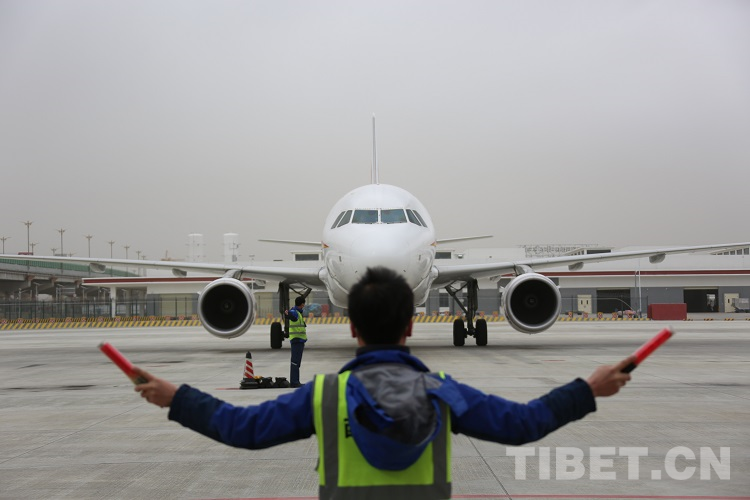 資料圖:一架民航飛機(jī)抵達(dá)拉薩貢嘎機(jī)場(chǎng)
