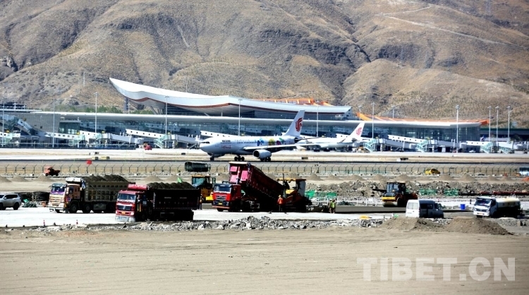 資料圖:今年4月,拉薩貢嘎機(jī)場(chǎng)第二跑道建設(shè)現(xiàn)場(chǎng)