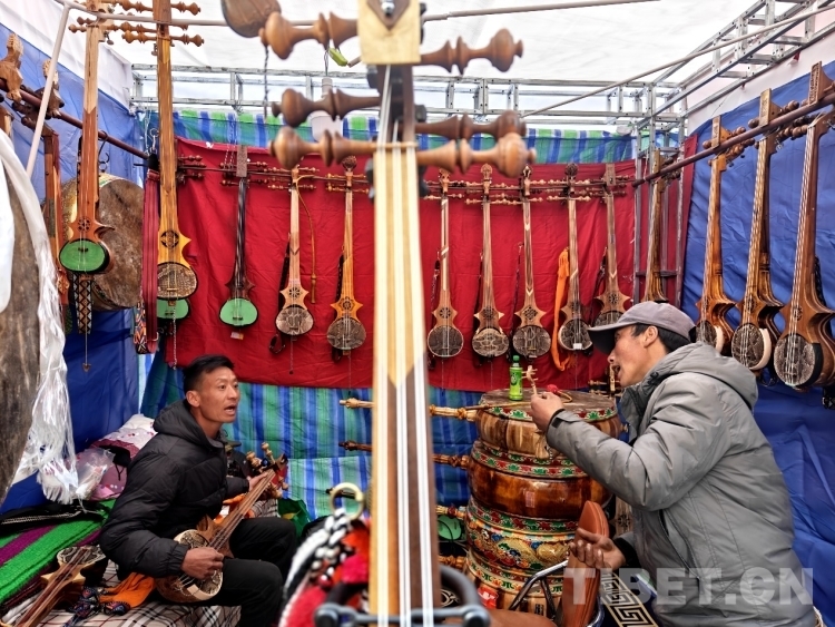 “參加雅礱物交會是扎念琴銷售的重要渠道,上一屆雅礱物交會,會期還沒結束帶的產品都賣光了,所以這次特意提前準備、多備了一些貨品,相信會賣得很好?!苯衲?6歲的次仁多吉是山南市加查縣人,17歲時,次仁多吉開始跟隨父親學習扎念制作技術,如今能夠熟練制作扎念琴。在他的攤位上,悠揚的的扎念琴聲不斷傳出,吸引了不少逛展群眾駐足,他也會熱情邀請群眾體驗扎念琴彈奏并簡單介紹構造等希望扎念琴文化推廣得更遠。