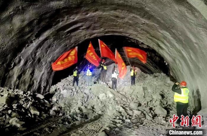 圖為12月5日,普巴隧道左洞貫通。標志著拉日高速公路工程主體全線貫通,為該工程明年6月底建成通車奠定堅實基礎(chǔ)。西藏自治區(qū)交通運輸廳供圖