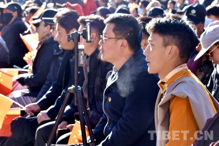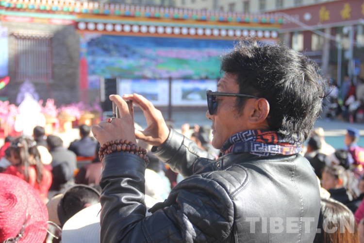 圖為開幕式現(xiàn)場(chǎng)市民在直播 攝影:次旦拉姆