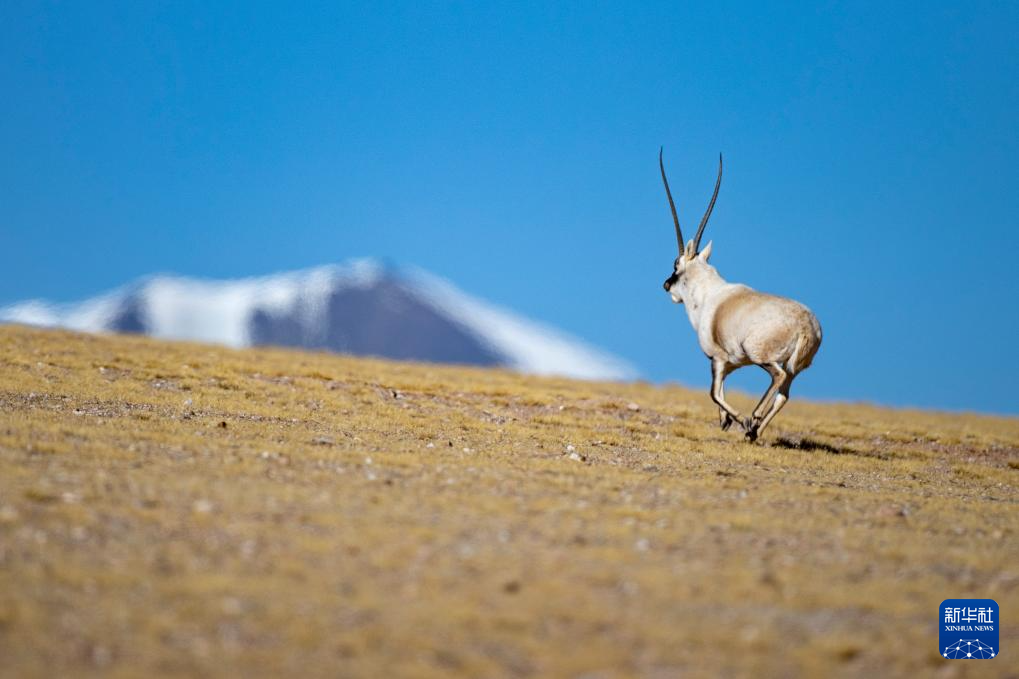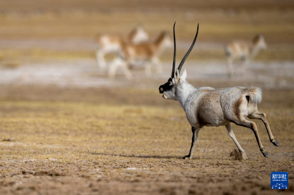 在羌塘國(guó)家級(jí)自然保護(hù)區(qū),一只雄性藏羚羊在奔向雌性(12月16日攝)。新華社記者 姜帆 攝