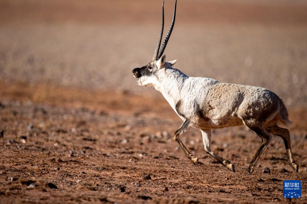 在羌塘國(guó)家級(jí)自然保護(hù)區(qū),一只雄性藏羚羊在奔跑(12月16日攝)。新華社記者 姜帆 攝