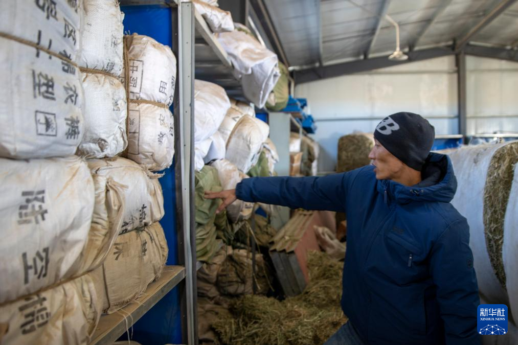 當?shù)馗刹吭诙砭绵l(xiāng)農(nóng)牧業(yè)防抗災物資儲備庫里盤點物資庫存。這里草料、爐子、棉服、煤炭、除雪工具等一應俱全(12月18日攝)。新華社記者 姜帆 攝