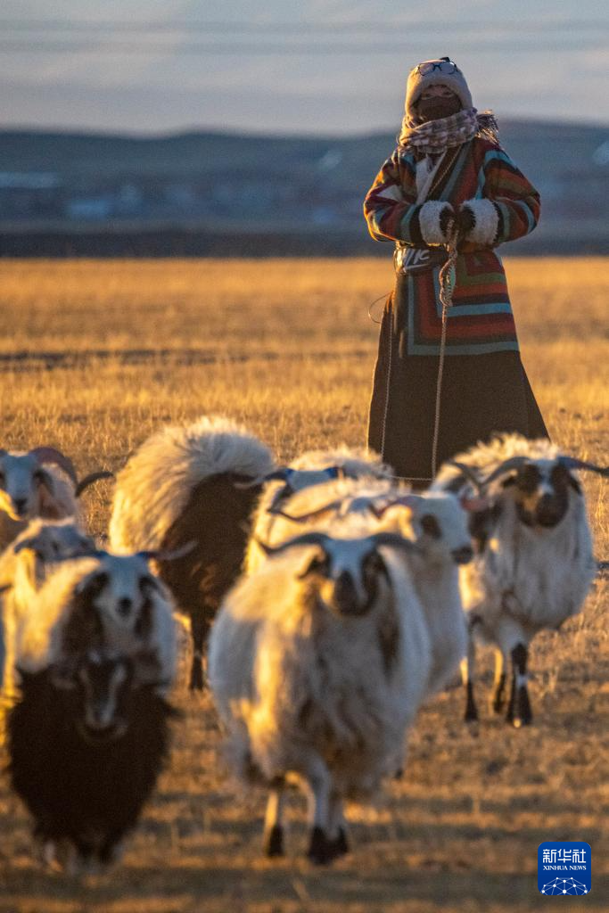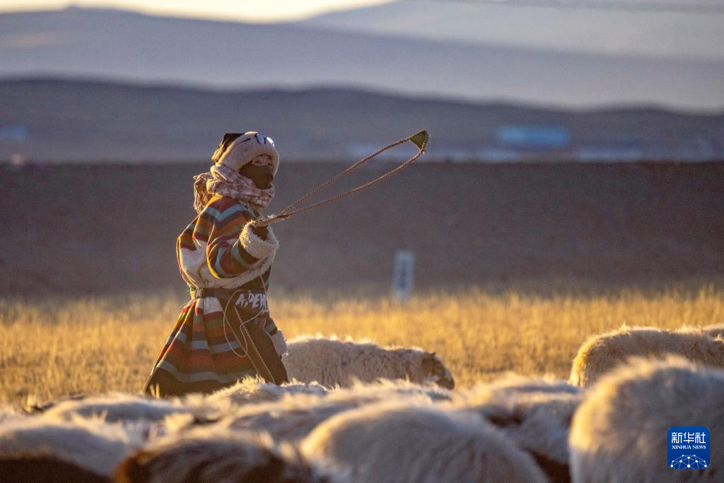 丹增在牧場(chǎng)上放羊(12月18日攝)。新華社發(fā)(旦增努布攝)