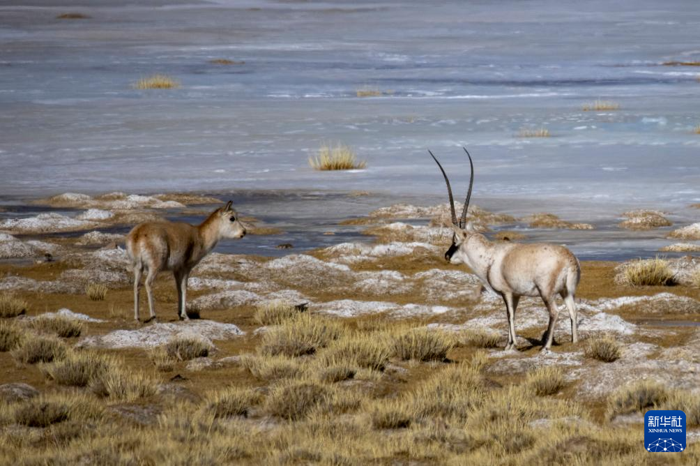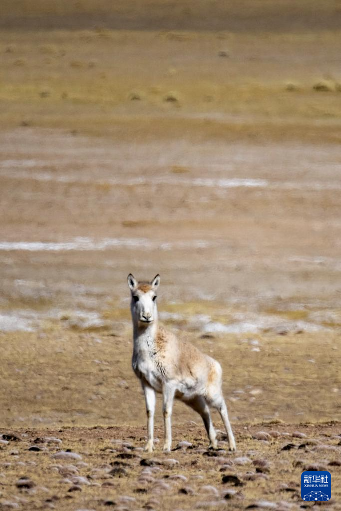 這是在色林錯(cuò)湖畔拍攝到的藏羚羊(1月5日攝)。新華社記者 旦增尼瑪曲珠 攝