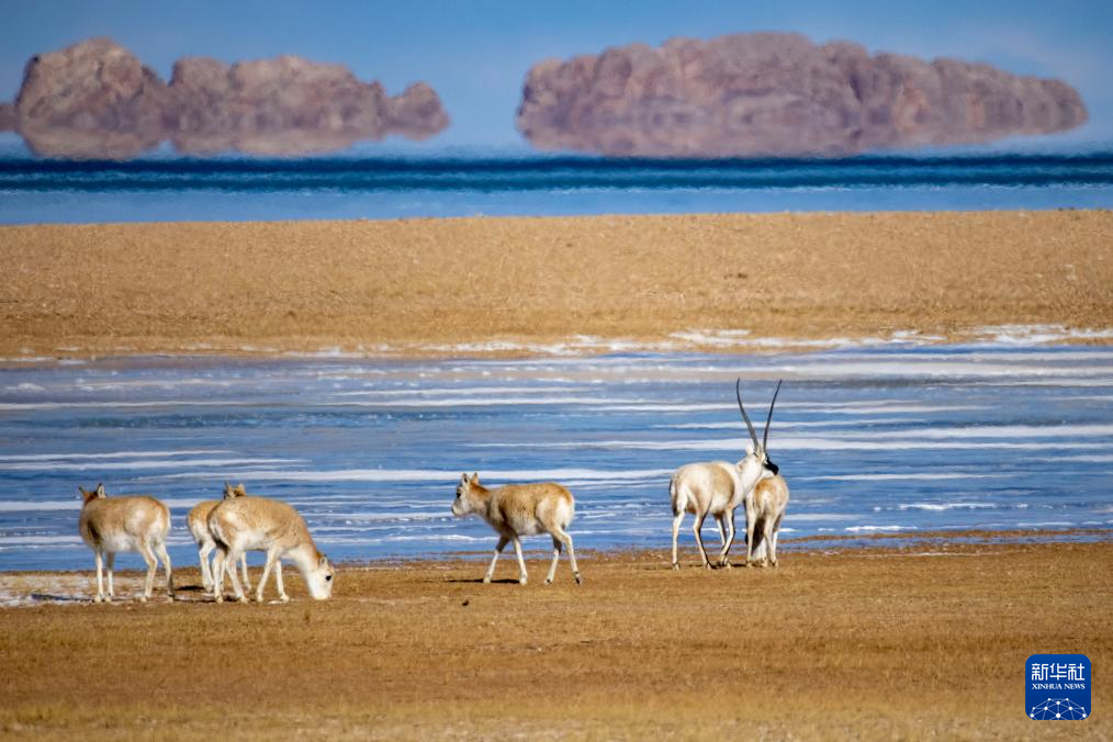 這是在色林錯(cuò)湖畔拍攝到的藏羚羊(1月5日攝)。新華社記者 姜帆 攝