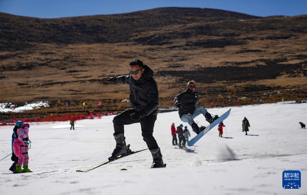 1月13日,滑雪愛好者在墨多滑雪場(chǎng)滑雪。新華社記者 晉美多吉 攝 ??