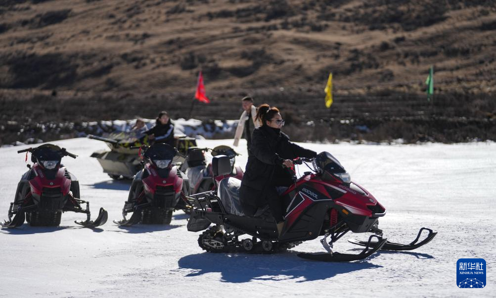 1月13日,游客在墨多滑雪場(chǎng)體驗(yàn)雪地摩托車嬉雪項(xiàng)目。新華社記者 晉美多吉 攝 ??