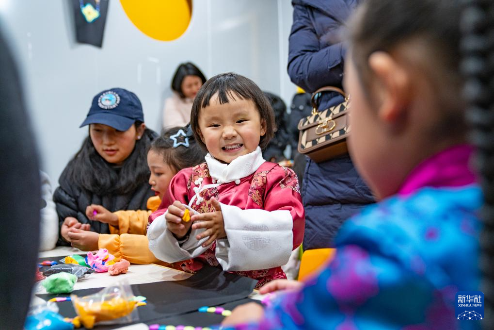 2月3日,孩子們?cè)诶_的兒童藏裝派對(duì)上用彩泥做手工。新華社記者 丁增尼達(dá) 攝