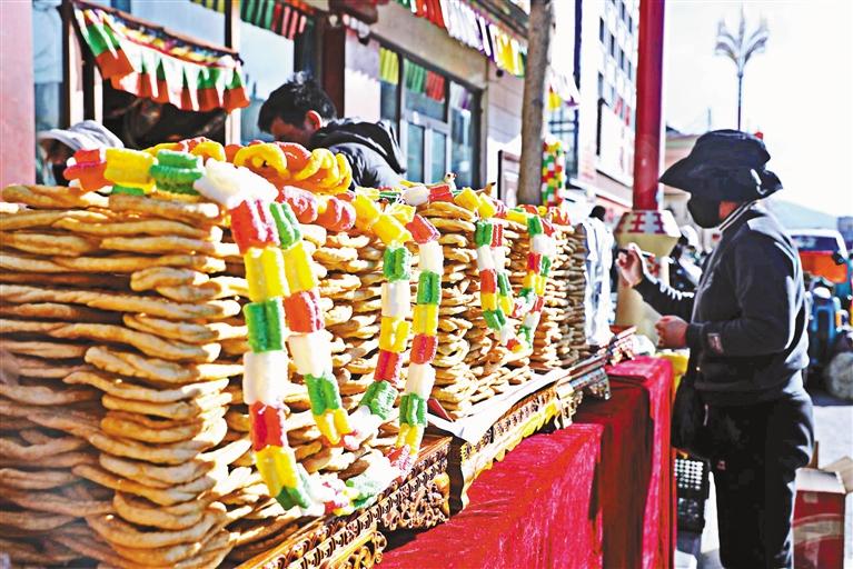 定好了藏裝的布料和款式,索朗玉珍便和母親步行來到了八廓商城,奔向卡賽、風(fēng)干牦牛肉、奶渣、糖果等年貨銷售區(qū)。