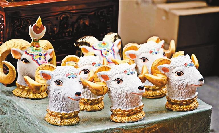 塑彩羊頭在藏語中稱為“隆果”,在雪域亙古浩瀚的歷史中,高原兒女自古以來便認(rèn)定羊是吉祥的動(dòng)物,代表了藏族群眾祈盼來年五谷豐登、六畜興旺。