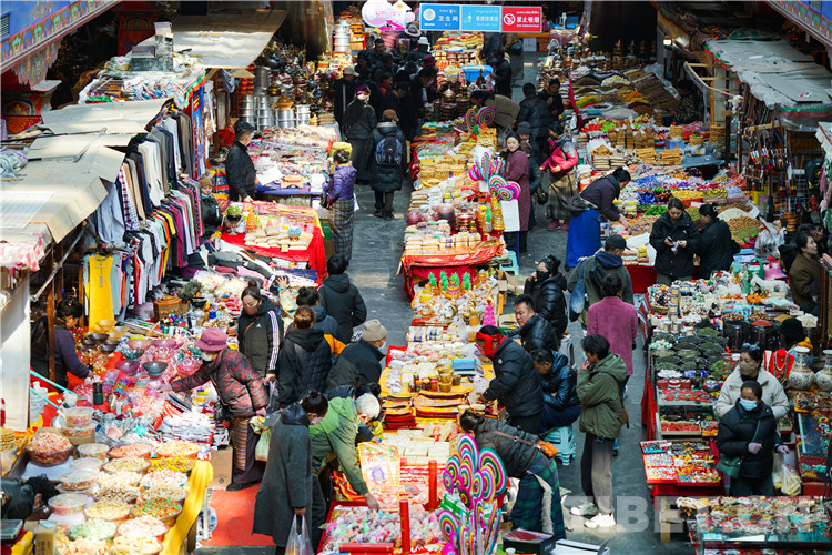 圖為銷(xiāo)售著琳瑯滿(mǎn)目各式藏歷新年年貨的八廓商城 攝影:趙振宇