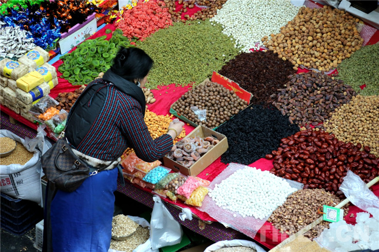拉薩:“兩節(jié)”近 年味濃 年貨市場(chǎng)熱鬧中