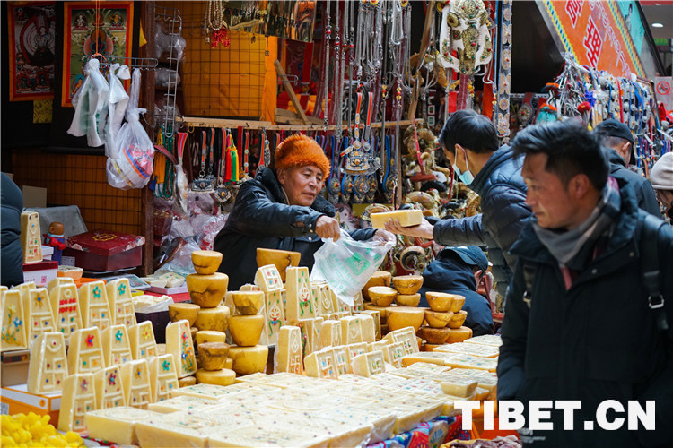 圖為銷(xiāo)售著琳瑯滿(mǎn)目各式藏歷新年年貨的八廓商城 攝影:王佳豪