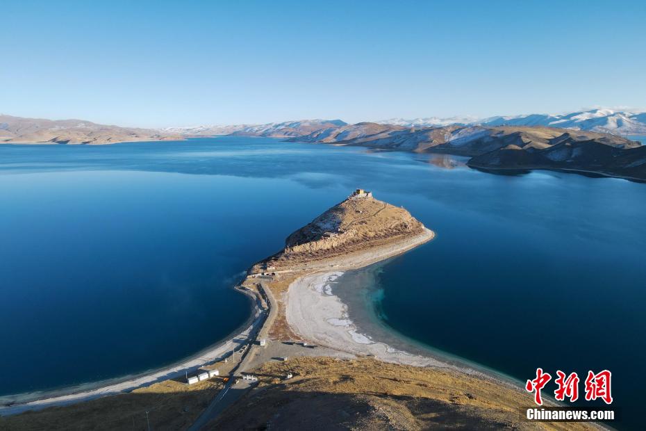 西藏自治區(qū)山南市羊卓雍錯(簡稱羊湖)藏語意為“碧玉湖”,湖面海拔4441米,與納木錯、瑪旁雍錯并稱西藏三大“圣湖”。近日,中新網(wǎng)記者自駕羊卓雍錯看到,周邊部分山體被積雪覆蓋,湖水更顯深藍(lán),航拍視角下像巨大的藍(lán)寶石鑲嵌在高原大地,風(fēng)光壯麗。在羊卓雍錯湖畔,記者還偶遇藏原羚、赤狐等野生動物,盡顯高原生態(tài)之美。圖為西藏羊卓雍錯日托寺風(fēng)光。江飛波 攝