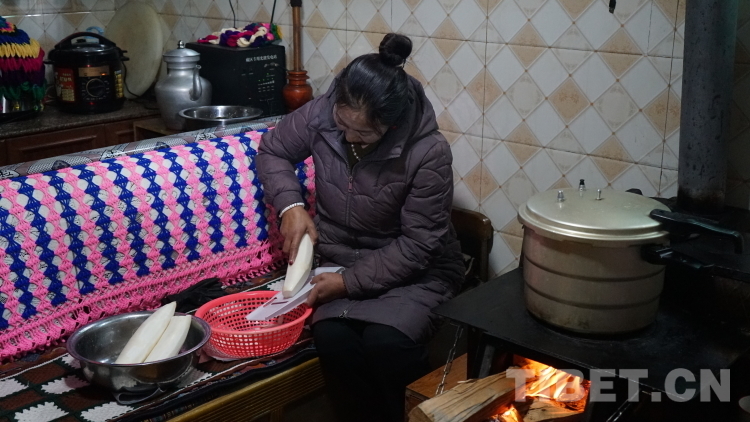 圖為次仁德瓊在為“古突”準(zhǔn)備蘿卜 攝影:張曉琪