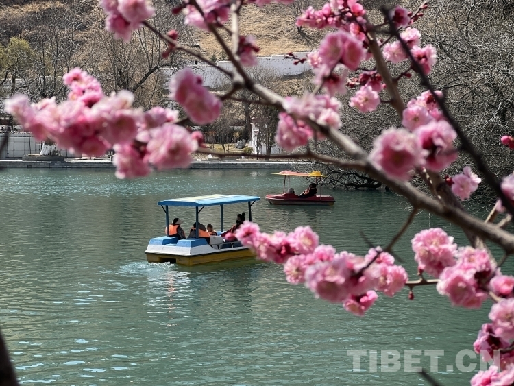圖為3月19日,布達(dá)拉宮腳下的宗角祿康公園里人們游船賞春景 攝影:德吉卓瑪