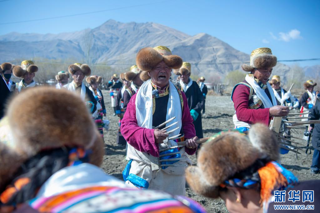 3月16日,克松社區(qū)居民格桑多吉在領(lǐng)唱古老的《春耕之歌》。新華網(wǎng) 旦增努布 攝 ??