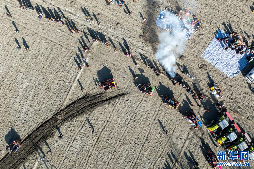 3月16日,克松社區(qū)居民在進(jìn)行春耕儀式(無(wú)人機(jī)照片)。新華網(wǎng) 旦增努布 攝 ??