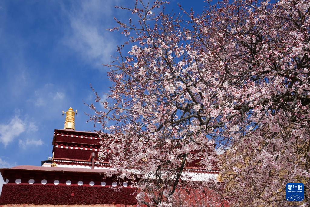 拉薩古剎帕崩崗周圍桃花盛開(kāi)(4月5日攝)。新華社記者 旦增尼瑪曲珠 攝