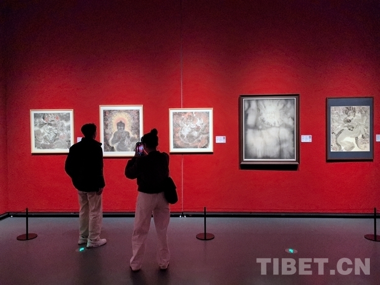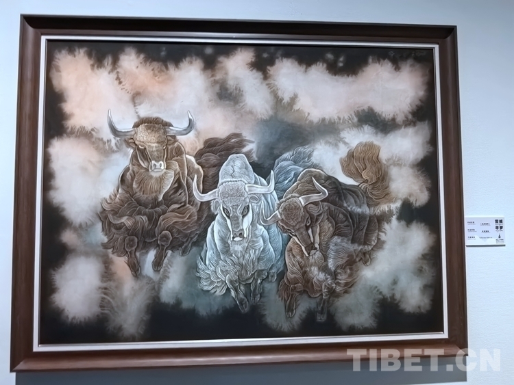 走進(jìn)西藏美術(shù)館,館內(nèi)A區(qū)1號展廳正在展出“雪域名家”系列的第一個展覽“雪域?qū)簟び嘤研拿佬g(shù)作品展”。
