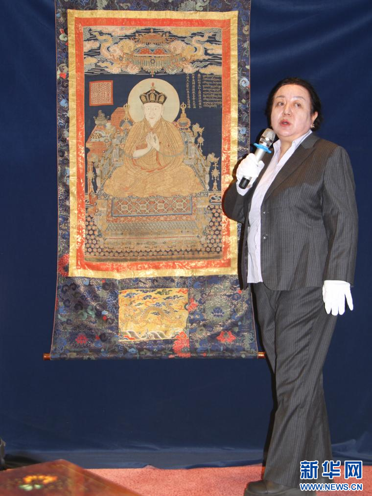 羅布林卡管理處文物科科長色莉瑪帶來了“大慈法王唐卡”。