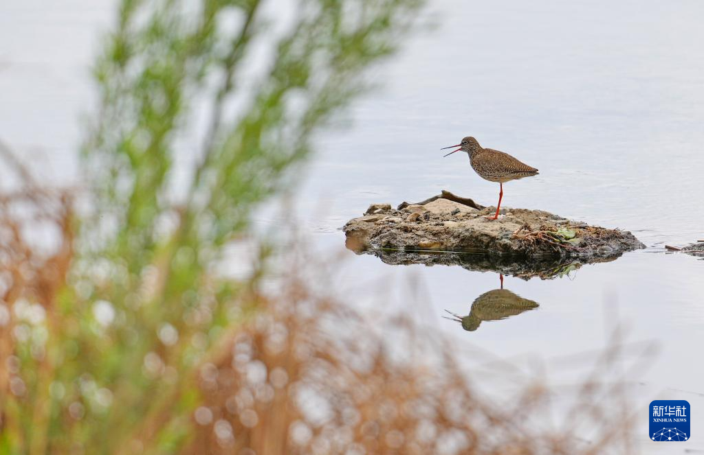 拉魯濕地里鳴叫的紅腳鷸(5月5日攝)。新華社記者 張汝鋒 攝