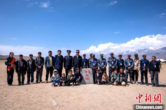 圖為在中尼24號界樁處合影留念。陳文超 攝
