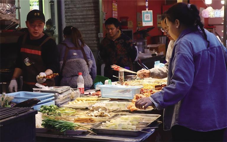 “在明亮寬敞的商場(chǎng)里逛得有些審美疲勞,但又實(shí)在留戀夏夜的舒適,所以才來到商場(chǎng)外的金街上,在大大小小的宵夜攤前一邊品嘗著各種美食,一邊談天說笑,感受獨(dú)屬于鬧市的人間煙火?!笔忻襁_(dá)珍開心地說。