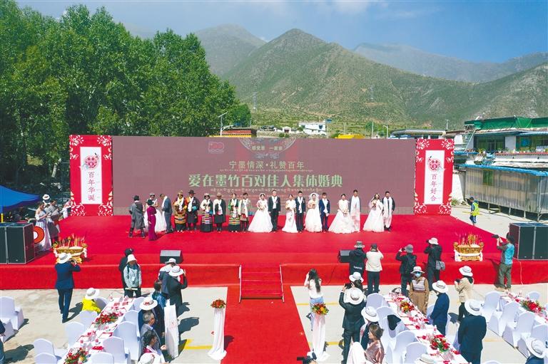 墨竹工卡縣舉行愛在墨竹百對佳人集體婚典現(xiàn)場。