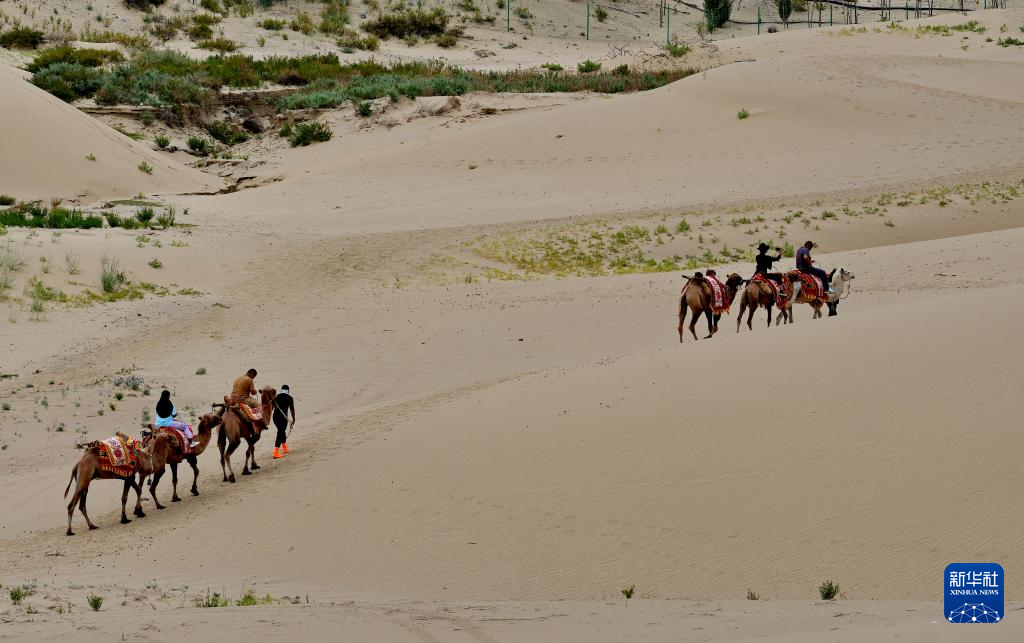 游客在扎囊國(guó)家沙漠公園里騎駱駝(7月30日攝)。新華社記者 張汝鋒 攝 ??