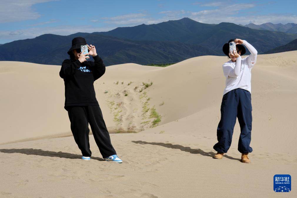 游客在扎囊國(guó)家沙漠公園里拍照(7月30日攝)。新華社記者 張汝鋒 攝 ??